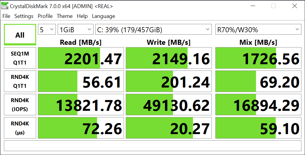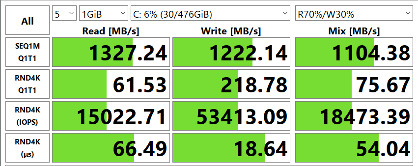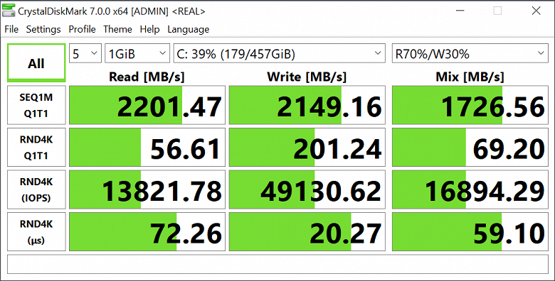 Картина выглядит неплохо. Для ее полноты приведем ниже результаты аналогичных испытаний SSD-накопителей в двух других мобильных ПК, Samsung MZ-ALQ512H в трансформере Lenovo ThinkBook 14s Yoga ITL и Kioxia KXG60ZNV1T02 в ноутбуке Dell XPS 13 9310.
