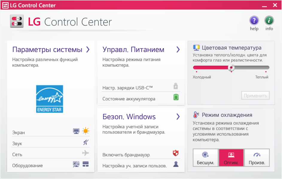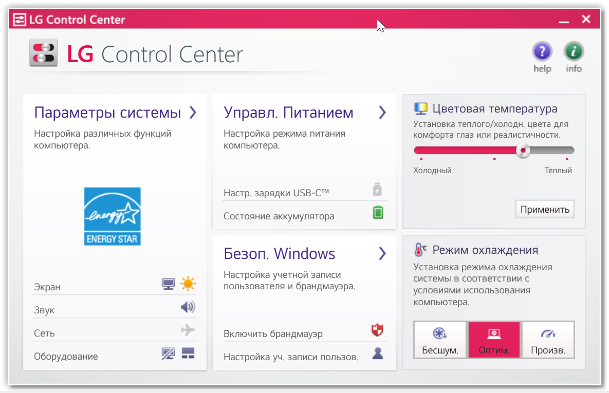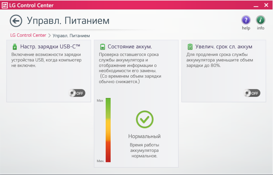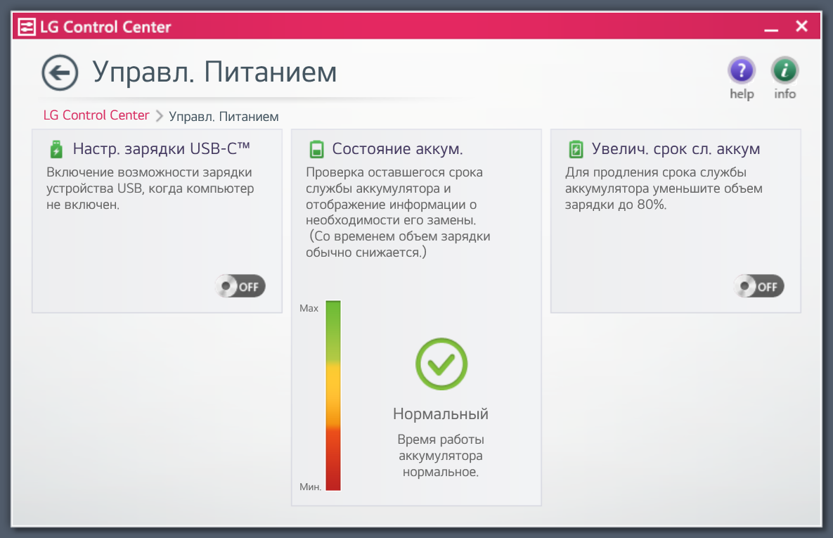 Наиболее важной утилитой с точки зрения тестирования ультрабука для нас является LG Control Center.