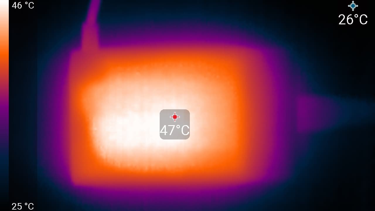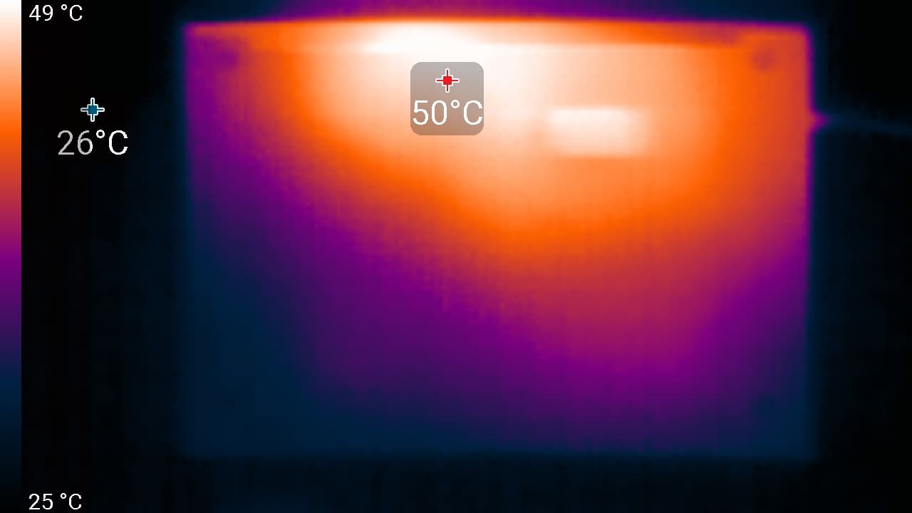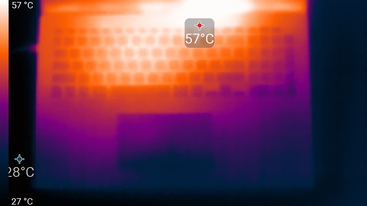 Ниже приведены термоснимки, полученные после долговременной работы ноутбука под максимальной нагрузкой на CPU и GPU (профиль Производительный):