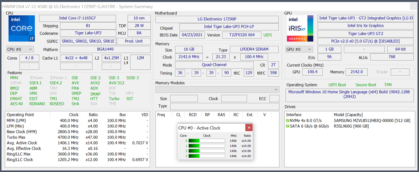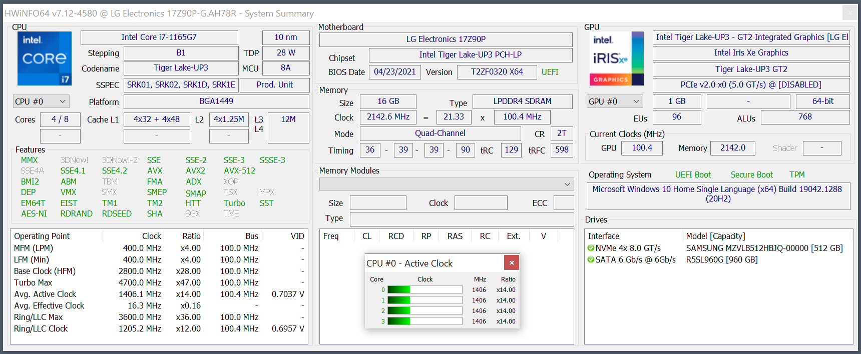Семейство мобильных процессоров Intel Core i7 11-го поколения (кодовое наименование Tiger Lake) с пониженным энергопотреблением было анонсировано год тому назад, и за прошедшее время практически все производители выдали на-гора десятки ноутбуков, ультрабуков и трансформеров на их основе. Компания LG тоже не опоздала и произвела на свет (в числе прочих) героя сегодняшнего обзора — тонкий и легкий ноутбук (ультрабук) на базе Intel Core i7-1165G7 с 17-дюймовым экраном. Подробнее о нем можно узнать на сайте производителя, а также из настоящего отчета.