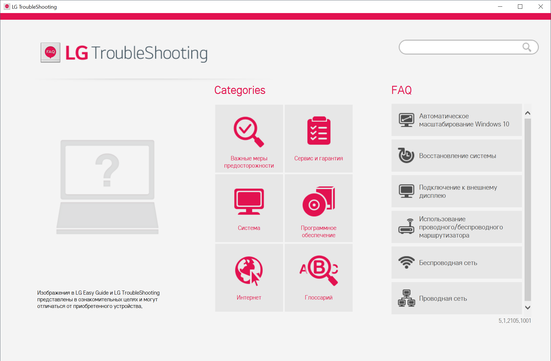 Два приложения являются справочниками: LG Easy Guide (скриншот вверху) и LG TroubleShooting (скриншот внизу).