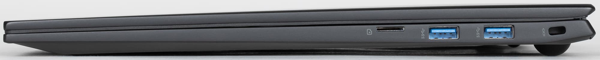 Справа расположен слот картовода для носителей microSD, два порта USB3 Gen2 Type-A и отверстие кенсингтонского замка.