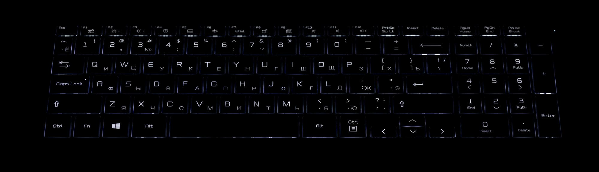 Клавиатура снабжена подсветкой с двухуровневой регулировкой по яркости (третье состояние — подсветка выключена). Все буквы латиницы и кириллицы, цифры, знаки и спецсимволы подсвечиваются одинаково ярко. Работать легко и удобно даже при нехватке света.