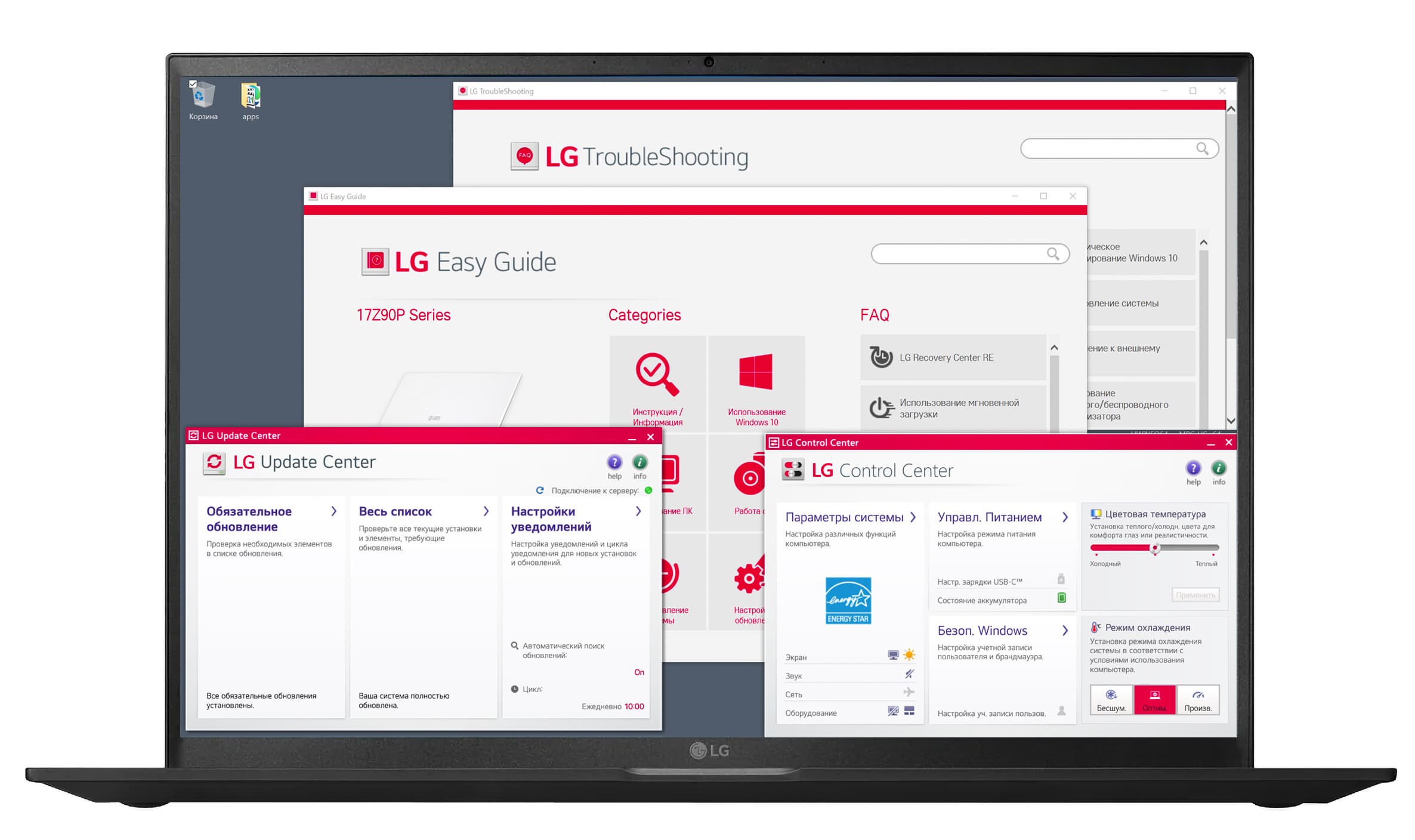 - набор фирменных утилит (LG Control Center, LG Power Manager и др.),
