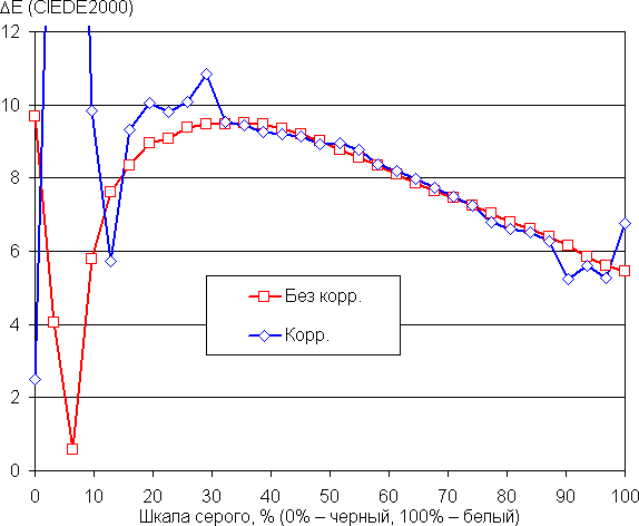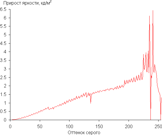 При питании от сети или от батареи и при ручном управлении яркостью ее максимальное значение составило 360 кд/м² (в центре экрана на белом фоне). Максимальная яркость довольно высокая, поэтому за ноутбуком как-то можно будет работать на улице ясным днем, если расположиться хотя бы не под прямыми солнечными лучами.