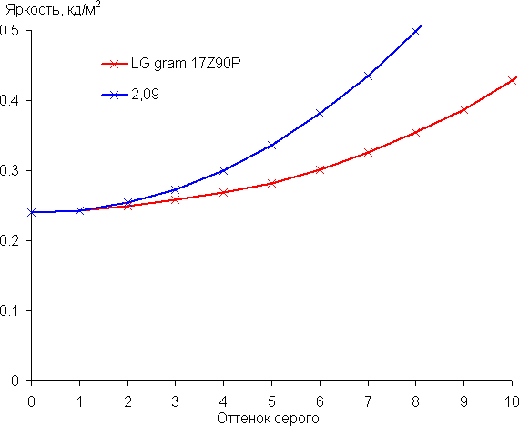 В LG gram 17Z90P используется 17-дюймовая (диагональ 43,2 см) IPS-матрица с разрешением 2560×1600 пикселей (отчет edid-decode).