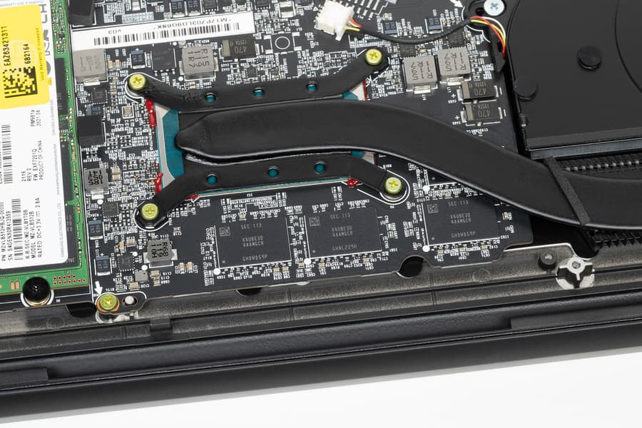 Ультрабук располагает 16 ГБ оперативной памяти LPDDR4x, работающей в четырехканальном режиме (по ширине интерфейса соответствует стандартному двухканальному режиму DDR4). Она целиком распаяна на системной плате и не подлежит замене и апгрейду.