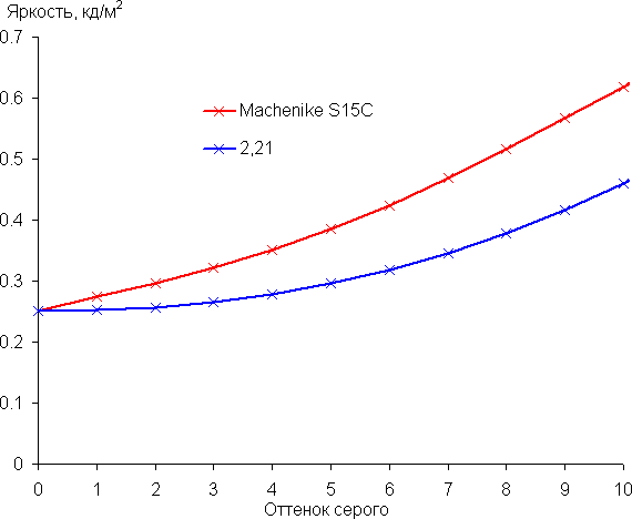 | Яркость черного поля | 0,27 кд/м² | −12 | 23 |