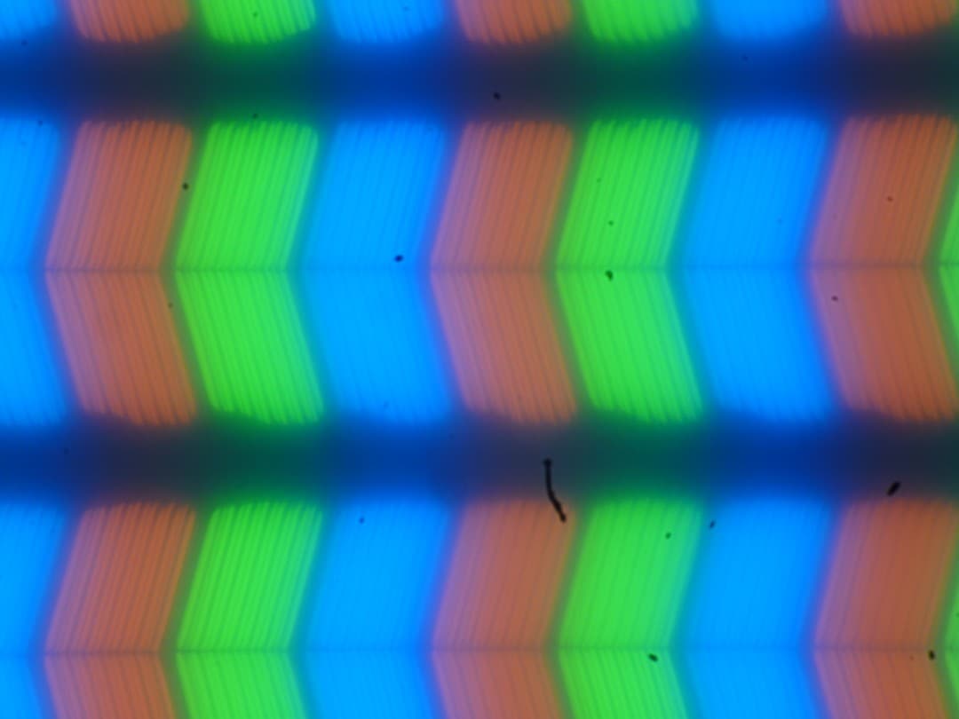 Внешняя поверхность матрицы черная жесткая и полуматовая (зеркальность хорошо выражена). Какие-либо специальные антибликовые покрытия или фильтр отсутствуют, нет и воздушного промежутка. При питании от сети или от батареи и при ручном управлении яркостью (автоматической подстройки по датчику освещенности нет) ее максимальное значение составило 235 кд/м² (в центре экрана на белом фоне). Максимальная яркость невысокая. Впрочем, если избегать прямого солнечного света, то даже такое значение позволяет как-то использовать ноутбук на улице летним солнечным днем.