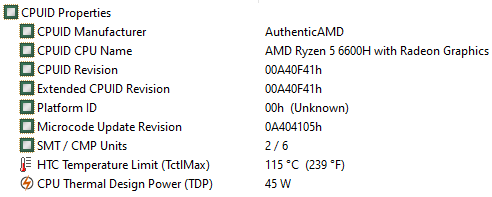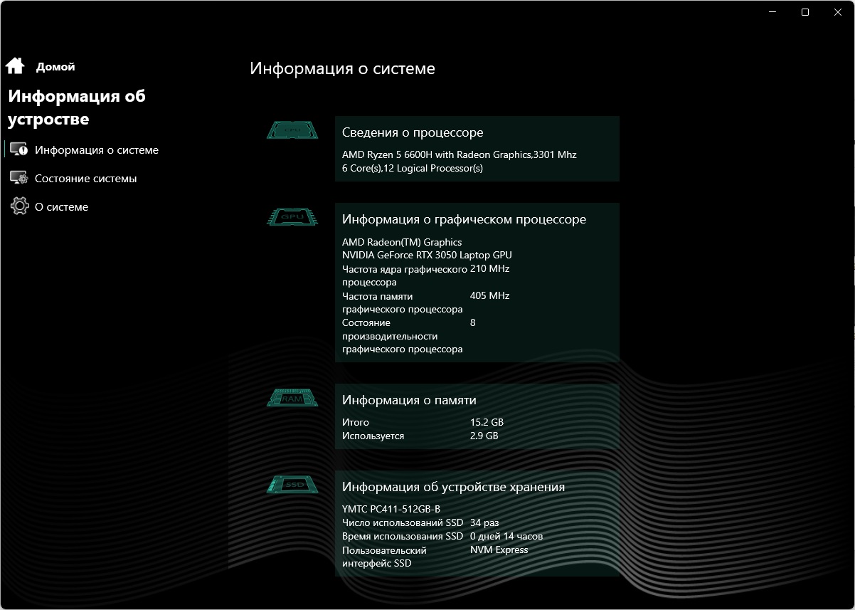 | Процессор | AMD Ryzen 5 6600H (6 ядер/12 потоков, 3,3/4,5 ГГц, до 45 Вт) | |