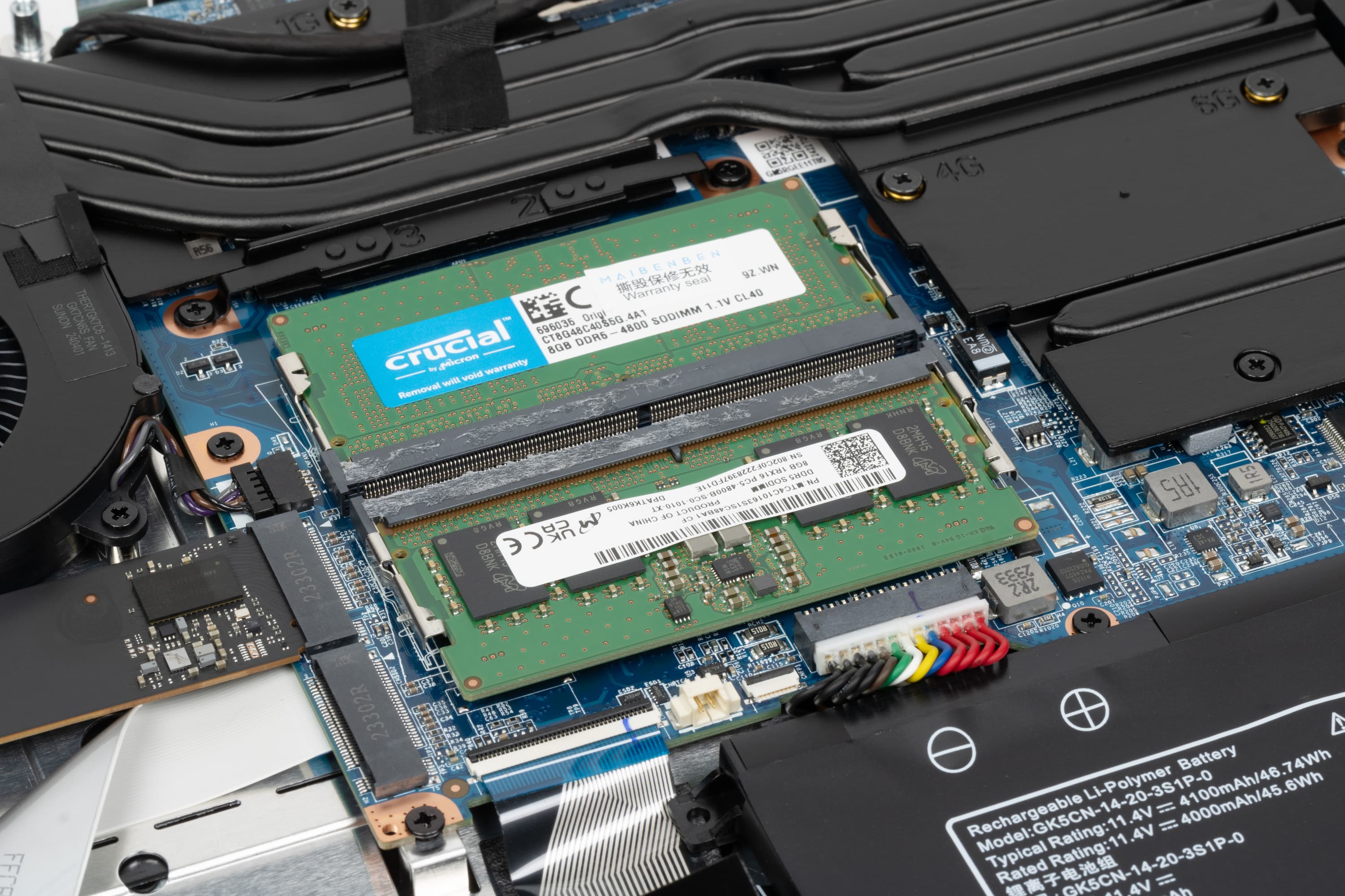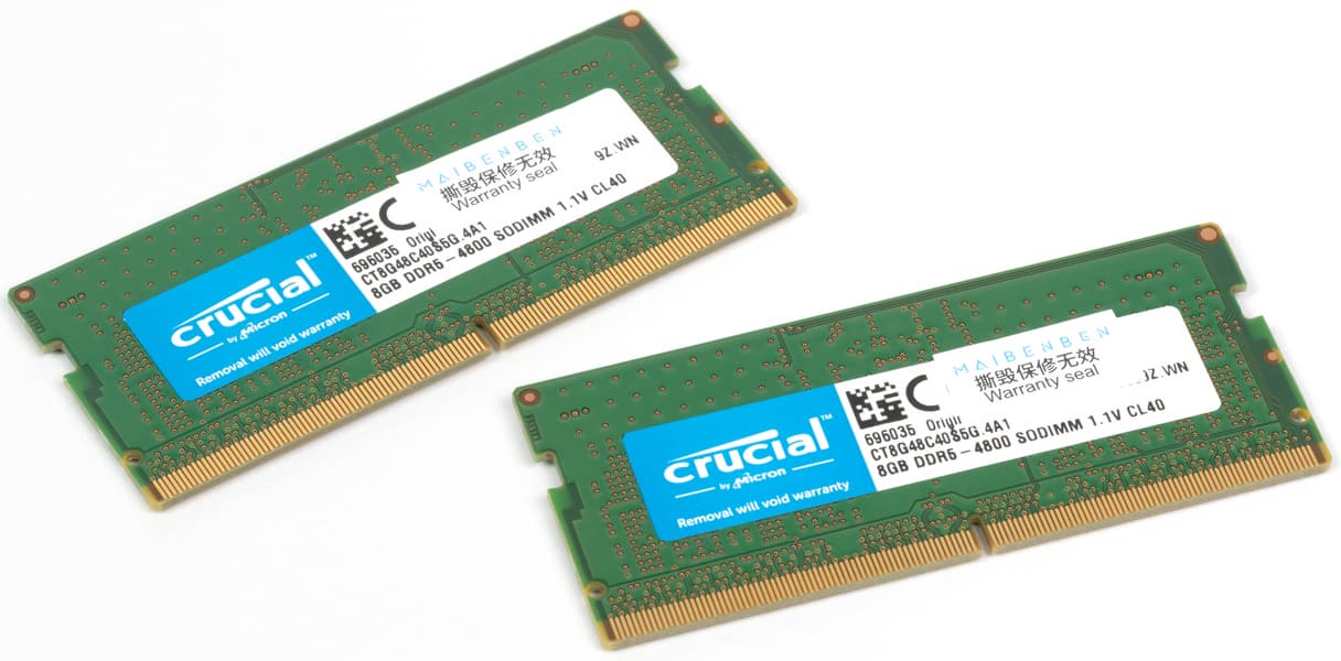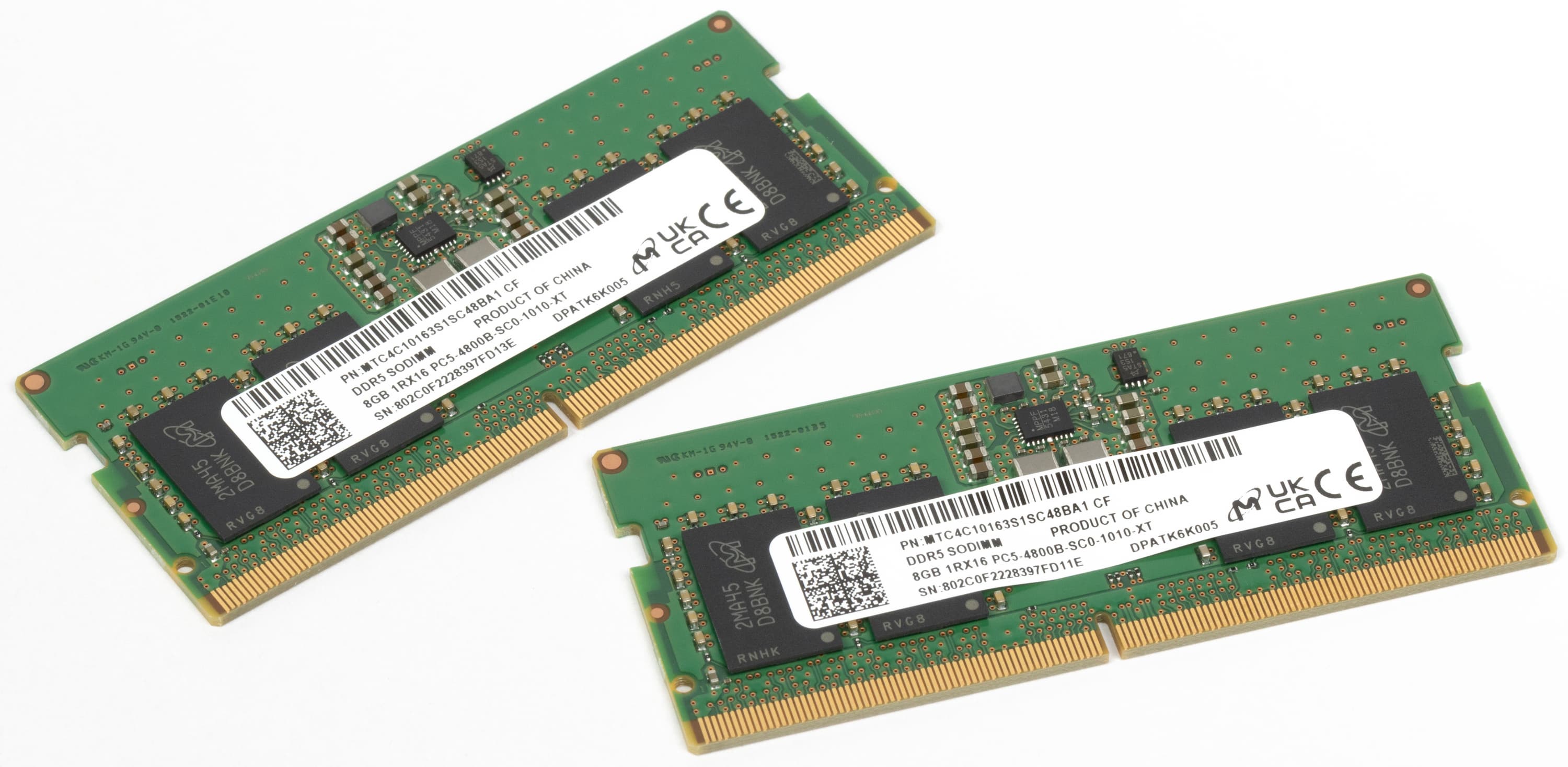 Для оперативной памяти предусмотрены два слота SO-DIMM, в которых установлены штатные 8-гигабайтные модули DDR5-4800.