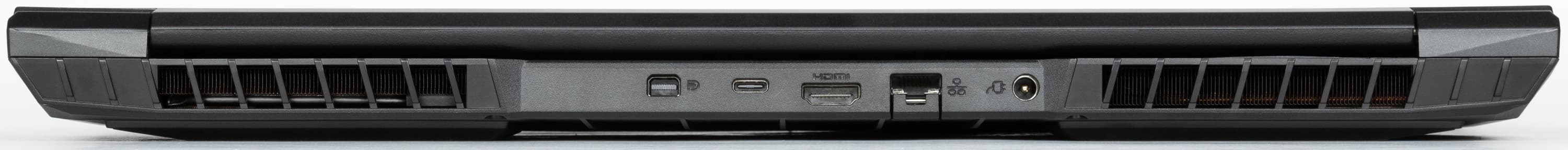 Сзади расположились разъемы, к которым обычно подключаются редко, но надолго: RJ-45 (с откидной шторкой) для подключения к проводной сети, полноразмерный HDMI, Mini-DisplayPort и гнездо для подключения штатного блока питания. Там же находится и порт USB 3.2 Gen2 Type-С, а вот его хотелось бы видеть сбоку, чтобы доступ к нему был удобнее, особенно если учесть, что он может использоваться лишь для обмена данными, но не для вывода видеосигнала или питания от PD-адаптера.