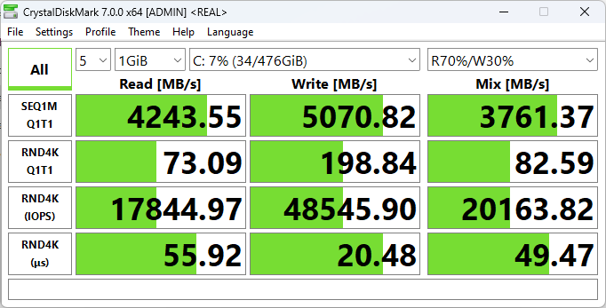 Используемый накопитель в соответствующих тестах показал себя весьма достойно — результаты получились лучшими среди участников сравнения.