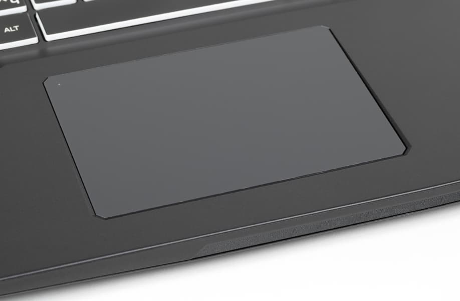 Сенсорная панель (кликпад) размером 116×75 мм без выделенных кнопок расположена перед клавиатурой и заметно смещена влево относительно центра корпуса, из-за чего при печати возможны касания поверхности панели левой рукой с последующими непредсказуемыми перемещениями указателя. Поверхность панели сделана практически заподлицо с верхней плоскостью корпуса, фактурой она тоже не сильно отличается, поэтому зрительно почти не выделяется.