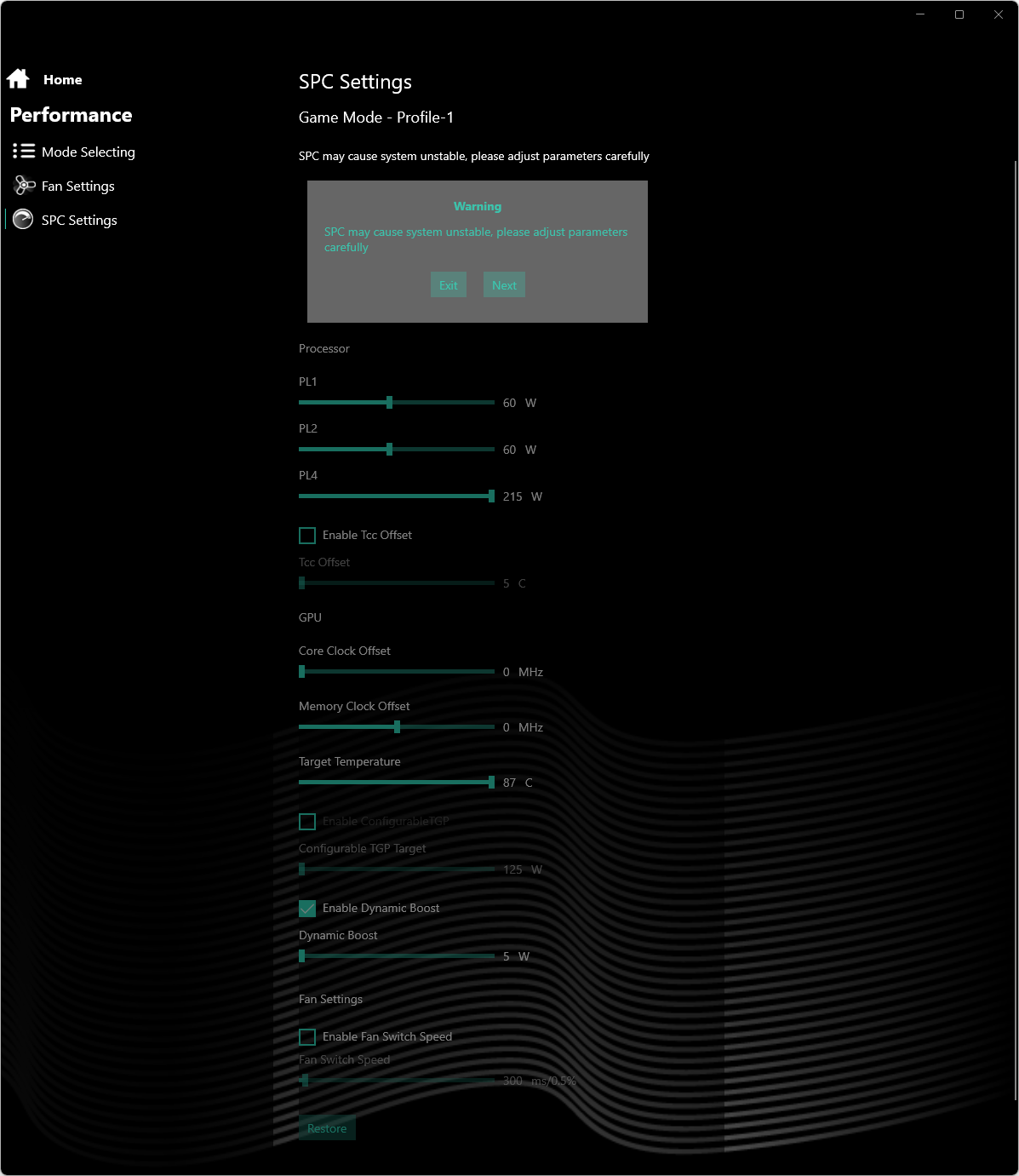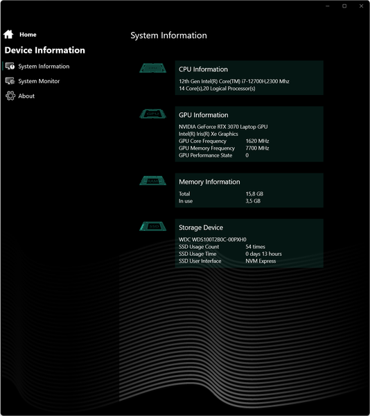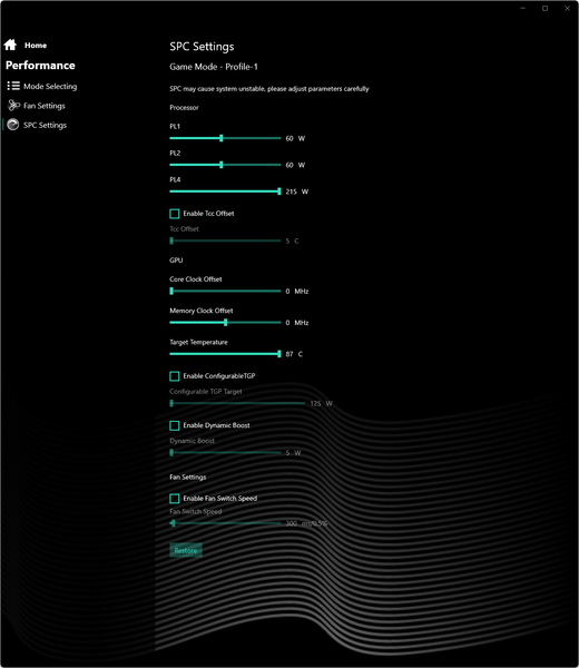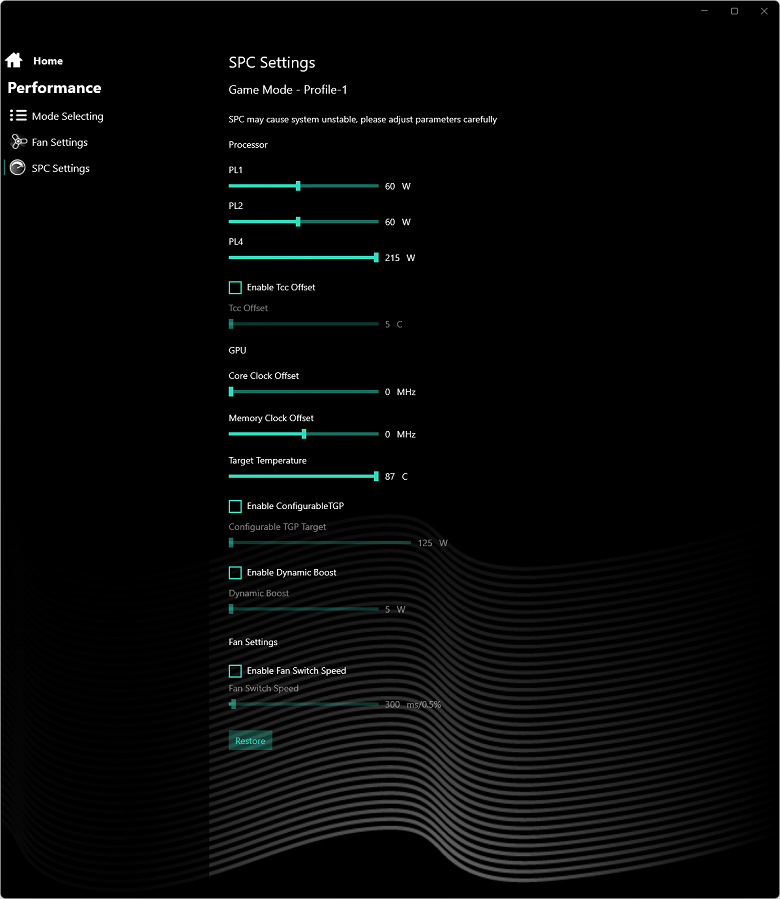Фирменная утилита дает возможность управлять разгоном центрального процессора и дискретной графики. Это редкость в среде конкурирующих моделей аналогичного класса, позволяющая заметно повысить быстродействие обоих вычислителей в реальных приложениях и играх. Благодаря возможностям разгона ноутбук демонстрирует весьма хорошую производительность в бенчмарках игр нашего стандартного набора, одерживая верх не только над наиболее близким аналогом (MSI Katana GF76), но и над машиной с видеокартой и процессором, стоящими на ступень выше (Lyambda LLT173M01). Причем соответствие стандарту 60/30 (средних/минимальных) fps обеспечивается в подавляющем большинстве случаев даже при нативном разрешении экрана 2560×1440, не говоря уже о привычном Full HD.
