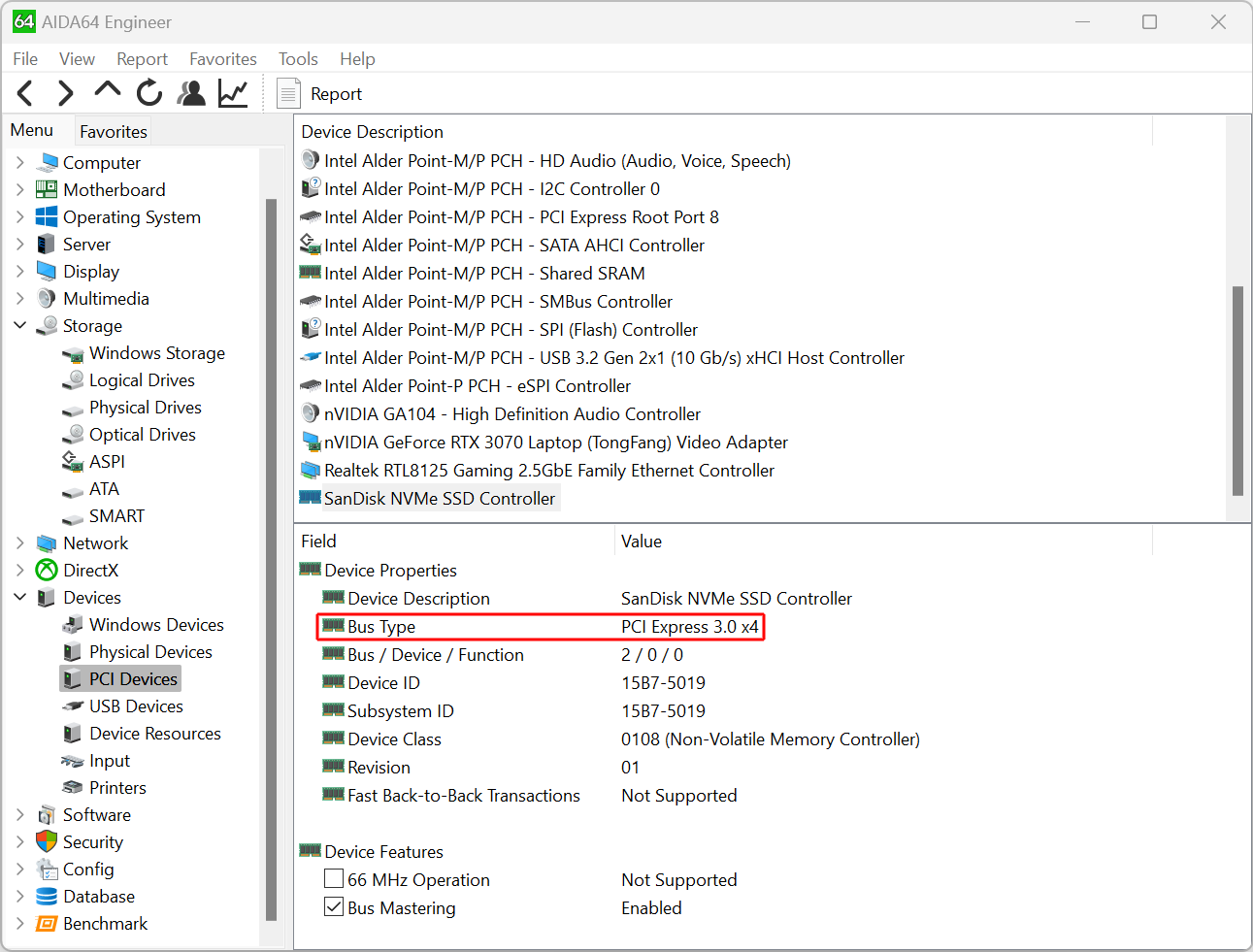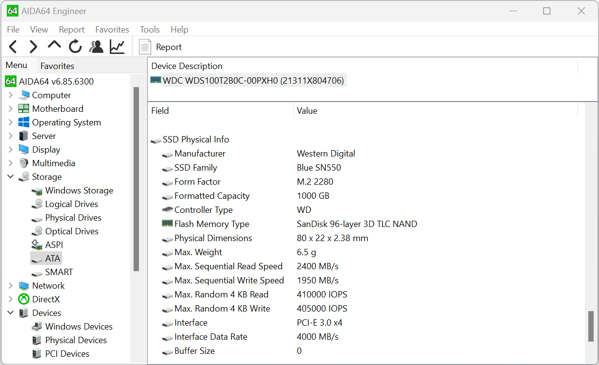 В принципе, на материнской плате реализована шина PCIe 4, но как видно из отчета Aida64, контроллер накопителя подключен к PCIe 3.0 x 4.