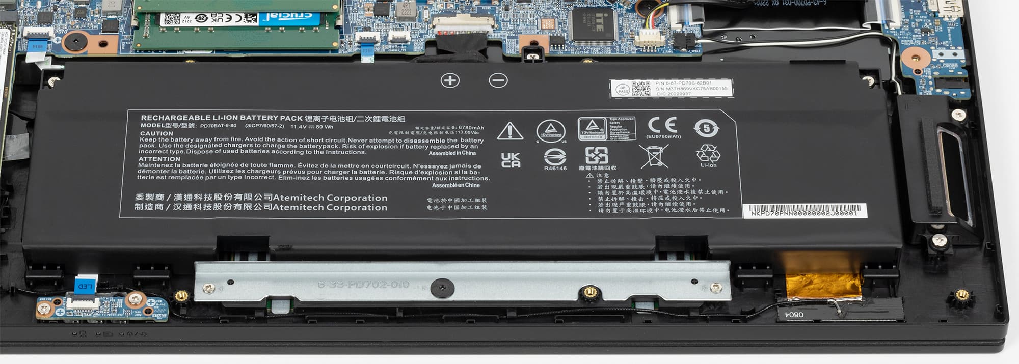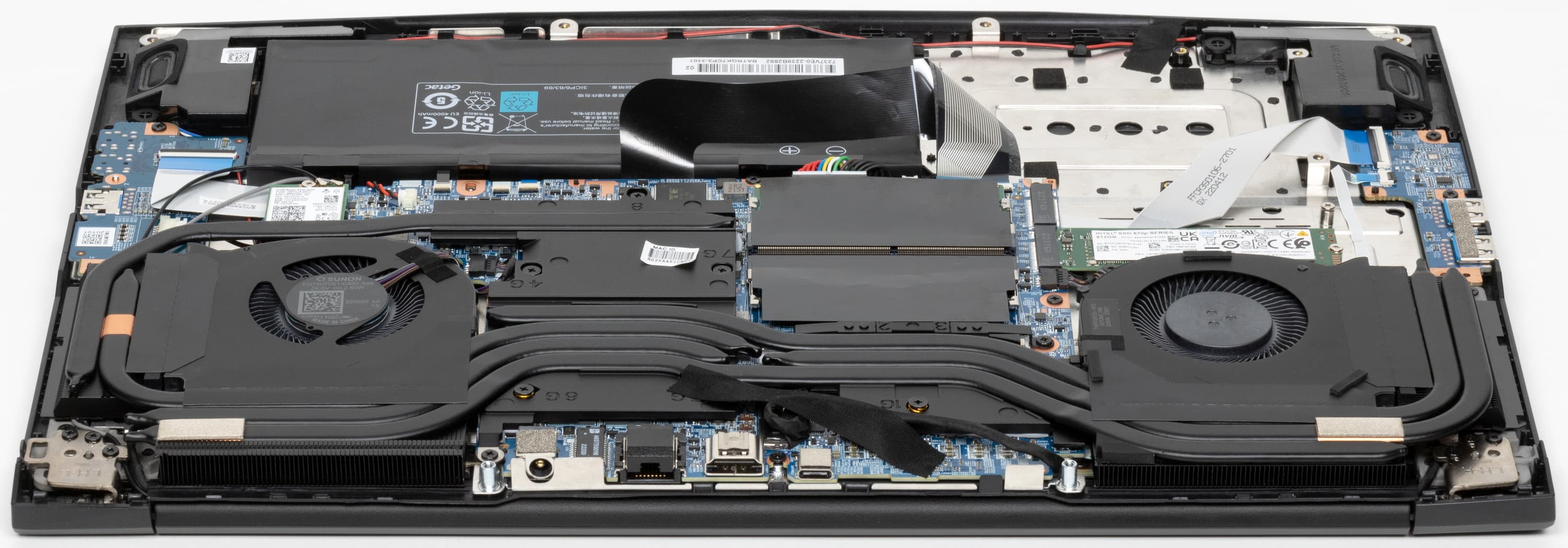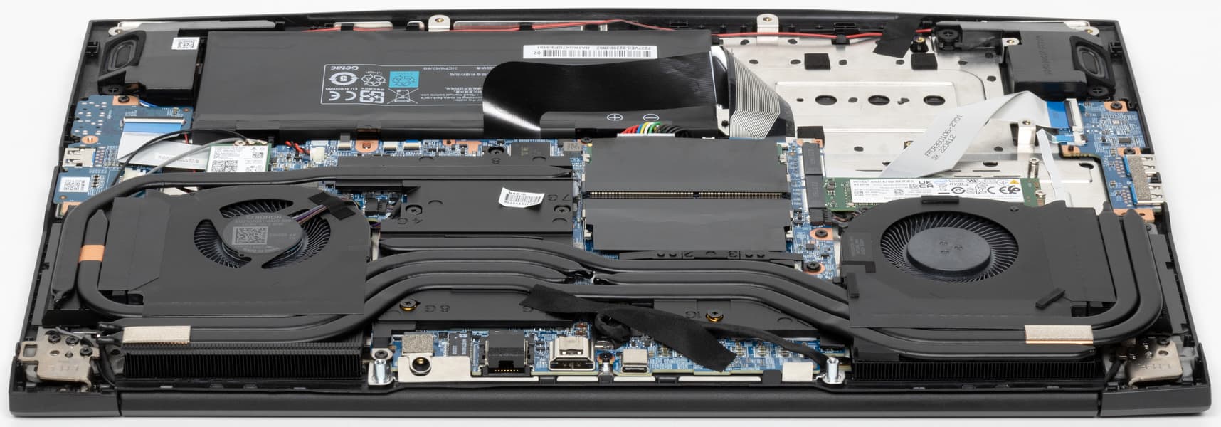 Здесь довольно много свободного места. Наибольший объем занимает отнюдь не батарея, а компоненты системы охлаждения ноутбука.