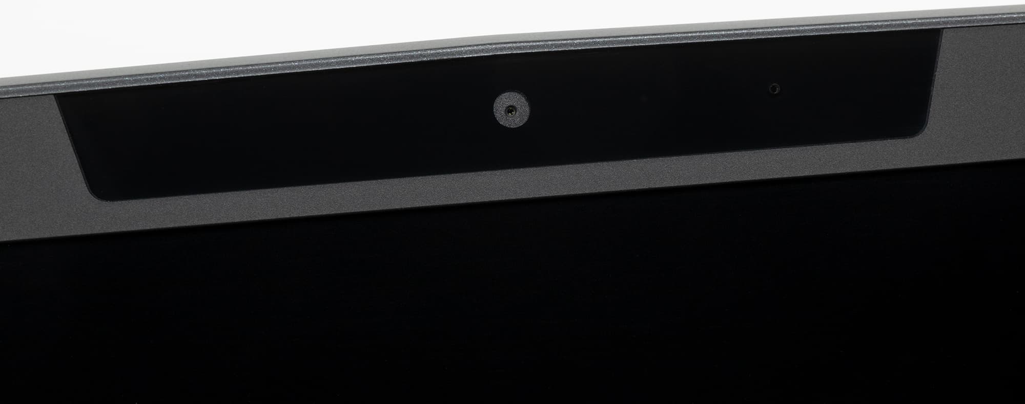 Сверху в экранное обрамление (здесь его ширина составляет уже 15 мм) встроена миниатюрная веб-камера с разрешением 720p, а справа от нее располагается светодиод, загорающийся синим при активации устройства.