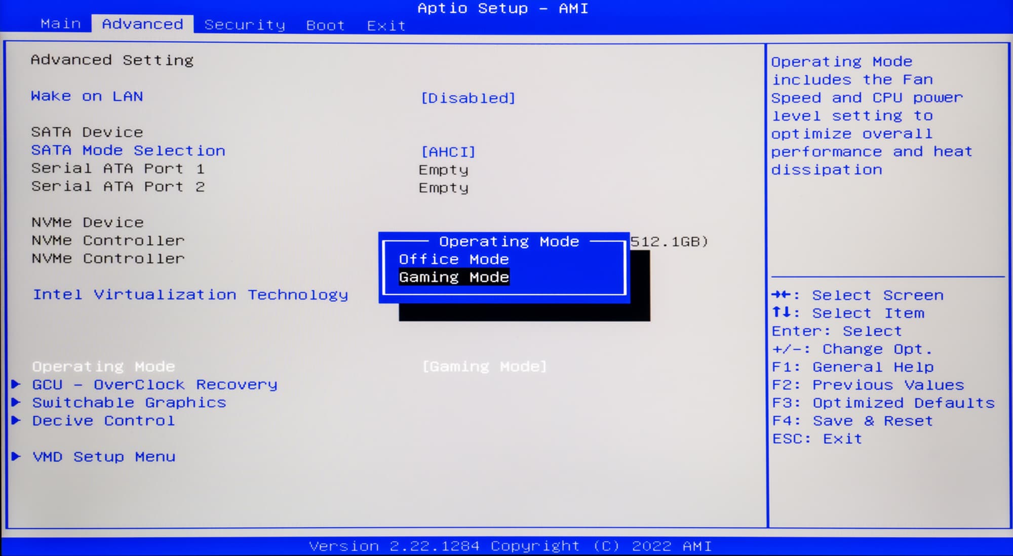 Опция Operating Mode (режим работы) позволяет выбирать сценарий (игровой или офисный) еще до загрузки операционной системы. Эта возможность дублирует соответствующий раздел фирменной утилиты Control Center, о которой мы подробно расскажем ниже.