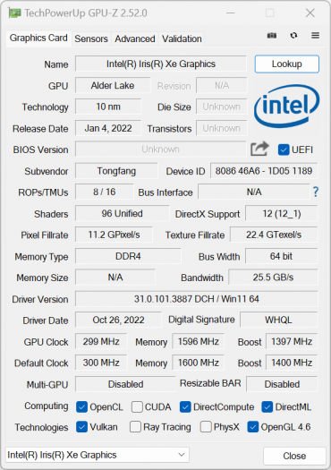 | Wi-Fi | Intel AX201NGW (Wi-Fi 6E 2,4/5 ГГц; стандарт IEEE 802.11ax; 2T2R MU-MIMO) | |