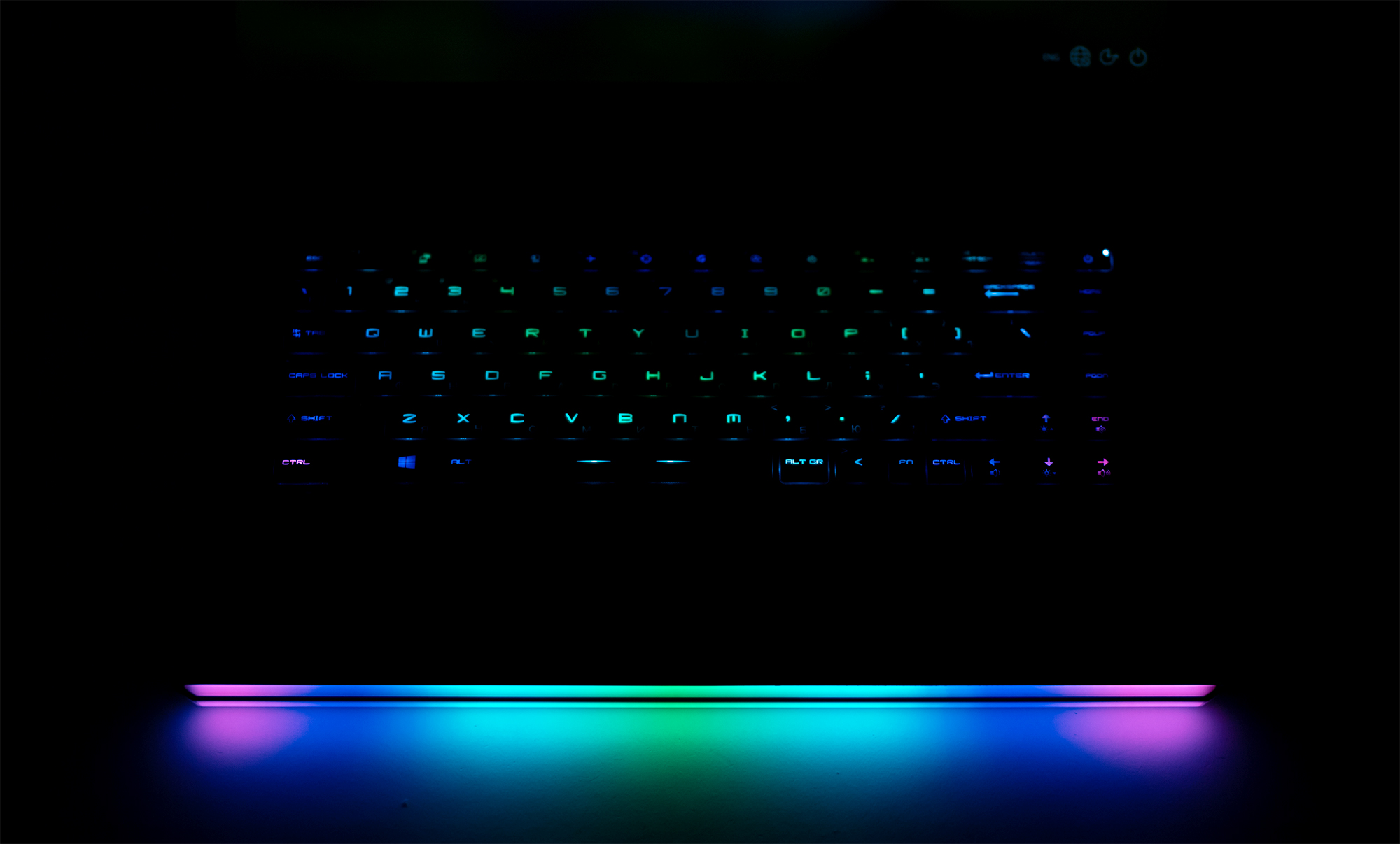 При первом же включении обращает на себя внимание RGB-подсветка полоски на передней панели. У корпуса тонкие полированные металлические панели. Клавиатура незначительно утоплена, но комфортна по расположению основных клавиш.