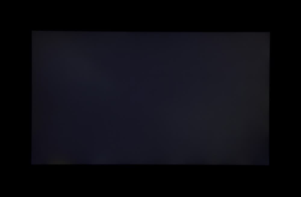 Если отступить от краев, то равномерность белого поля очень хорошая, а черного поля и, как следствие, контрастности — гораздо хуже. Контрастность по современным меркам для данного типа матриц немного выше типичной. Фотография ниже дает представление о распределении яркости черного поля по площади экрана: