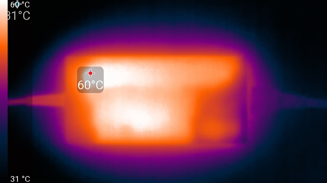 Под максимальной нагрузкой работать с клавиатурой комфортно, так как места под запястьями не греются. Держать ноутбук на коленях слегка дискомфортно, поскольку нагрев днища колени все же чувствуют. Блок питания греется очень сильно, поэтому при долговременной работе с высокой производительностью обязательно нужно следить, чтобы он не был ничем накрыт.