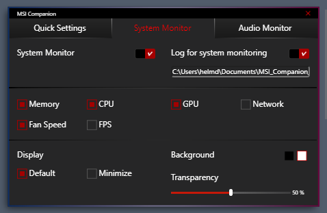 MSI Companion позволяет отслеживать параметры работы и менять некоторые настройки.