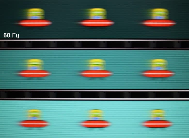 Для наглядного представления о том, что на практике означает такая скорость матрицы, какие могут быть артефакты от разгона, приведем серию снимков, полученных с помощью движущейся камеры. Такие снимки показывают, что видит человек, если он следит глазами за двигающимся на экране объектом. Описание теста приведено тут, страница с самим тестом тут. Использовались рекомендованные установки (скорость движения 960 пиксель/с для 60 Гц и 1008 пиксель/с для 144 Гц кадровой частоты), выдержка 1/15 с.