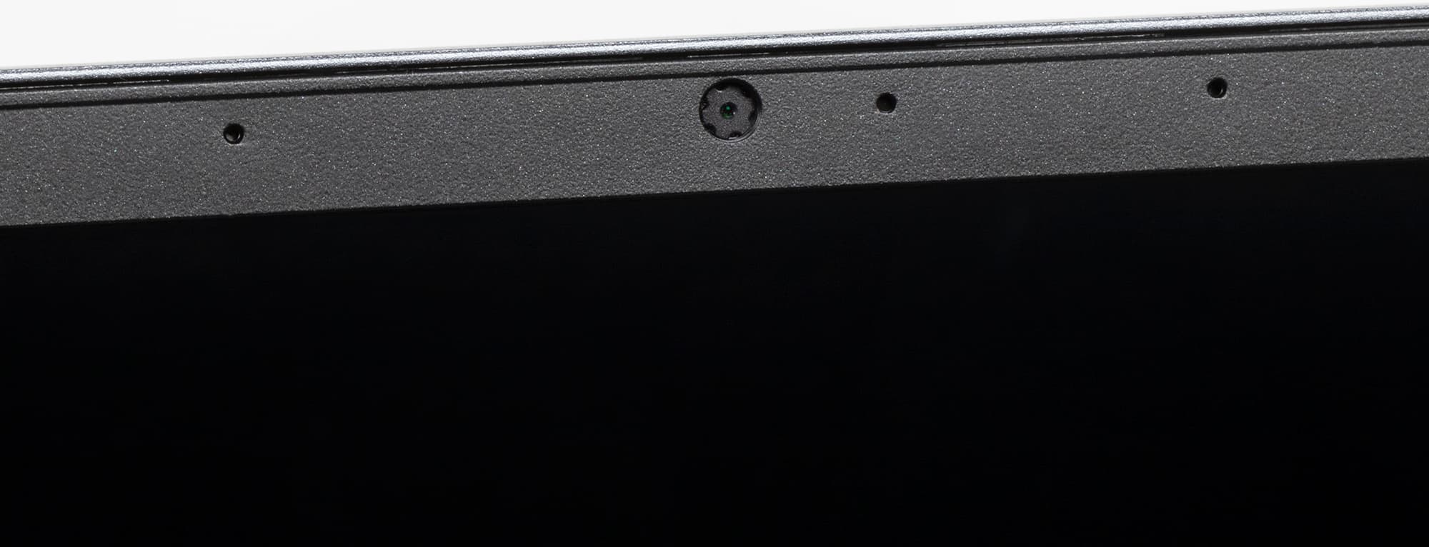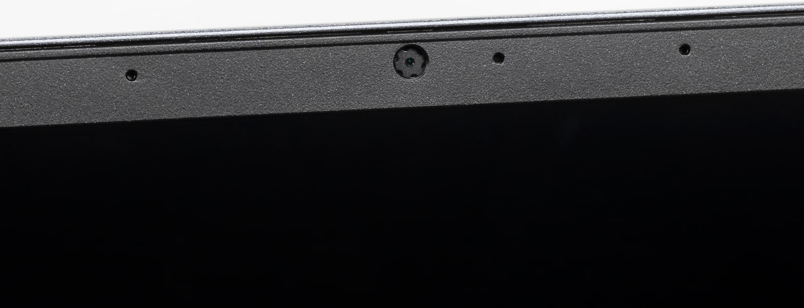 Рамка вокруг экрана по современным меркам средняя: 6 мм слева и справа, 9 мм сверху, 19 мм снизу до рабочей поверхности. В конструктивном плане это пластиковая накладка, на 1,5-2 мм возвышающаяся над плоскостью экрана. В верхней части рамки расположена веб-камера с сигнальным светодиодом и двумя микрофонами. Аппаратной защиты от включения камеры нет, но можно быстро включить и отключить по отдельности камеру и микрофоны сочетанием клавиш. Камера снимает в традиционном формате 720p при 30 к/с, качество традиционное слабое. Сигнальный светодиод при работе камеры не горит, а медленно мигает, что раздражает. Авторизация по лицу Windows Hello для этой камеры не поддерживается.