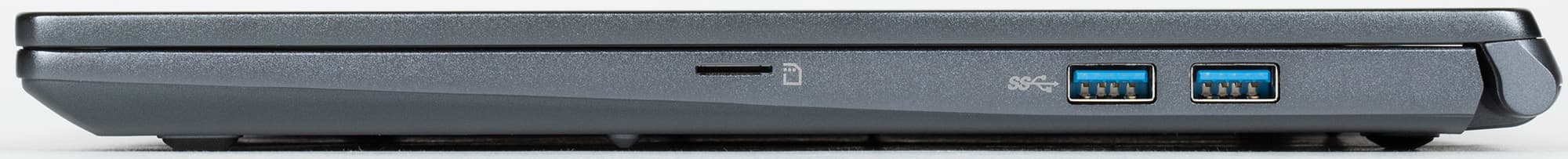 Справа — слот для карточек microSD и еще 2 USB3 Gen2 Type-A. Таким образом, количество портов у ноутбука приемлемое, хотя если заменить проприетарный разъем питания на еще один USB Type-C и добавить поддержку зарядки через любой из них — это было бы очень полезно и удобно, в частности можно было бы использовать сторонние адаптеры питания и иметь, например, по одному адаптеру дома и на работе. Поддержки проводной сети нет. Если ноутбук приобретается как мобильная часть рабочего места, можно озаботиться приобретением хаба в том числе с Ethernet-розеткой. Специально отметим, что все 4 порта USB соответствуют скоростному режиму USB3 Gen2 — не уверены, что мы видели до сих пор хоть один такой ноутбук, хотя в реальности количество портов важнее скорости.