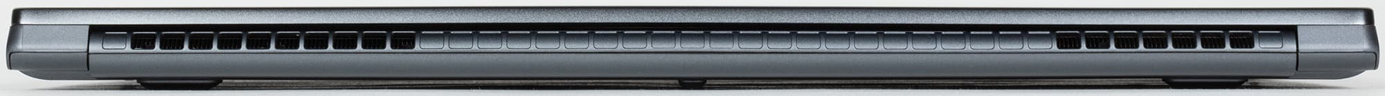 Передний торец у ноутбука глухой, без разъемов, а сзади есть только отверстия для продува воздуха сквозь радиаторы системы охлаждения (при откинутой крышке выходящий воздух немного нагревает низ экрана).