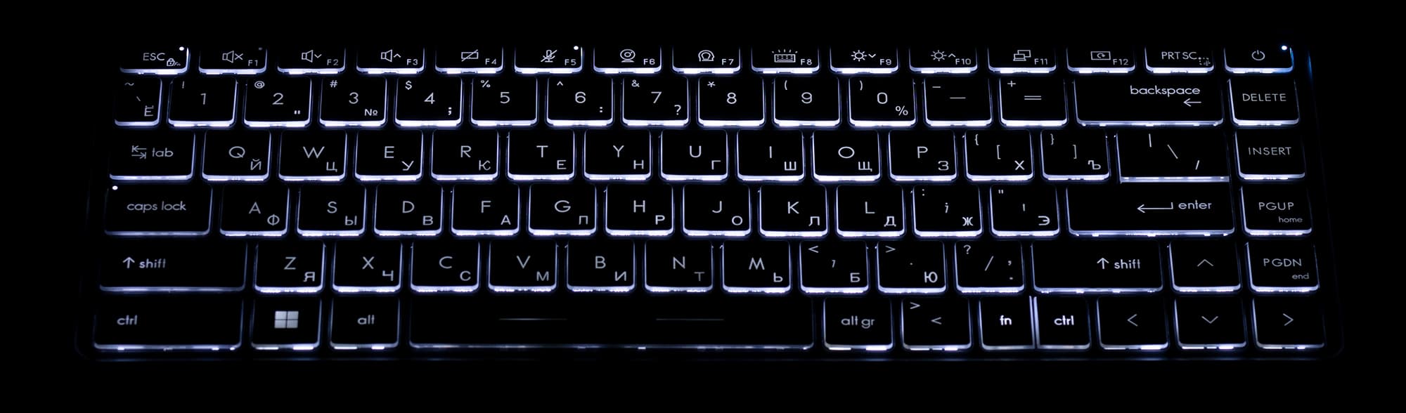 У клавиш есть нормальная белая подсветка с тремя регулируемыми с клавиатуры уровнями яркости (четвертое состояние — выключена). Символы на клавишах хорошо читаются, с этим проблем нет.