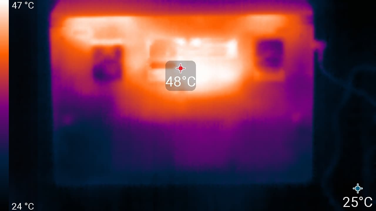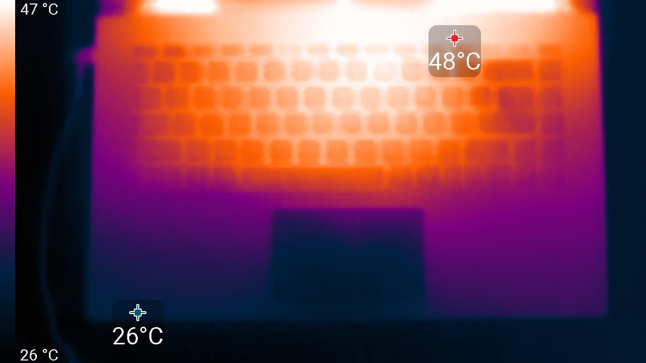 Ниже приведены термоснимки, полученные после долговременной работы ноутбука под максимальной нагрузкой на CPU и GPU (профиль Сбалансированный):