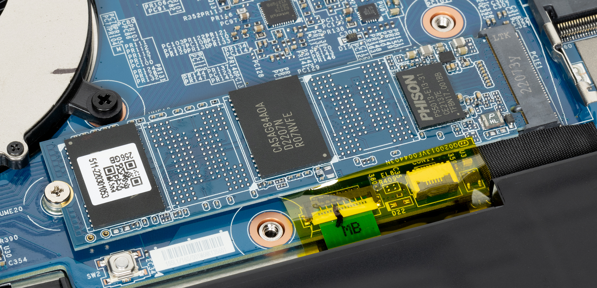 В качестве накопителя в нашей модификации ноутбука используется NVMe SSD объемом 256 ГБ. Это OEM-модель Phison (производителя контроллера) с интерфейсом PCIe 3.0 x4, занимающая слот M.2. У ноутбука имеется и пустой слот M.2, так что перспективы апгрейда здесь довольно радужные.
