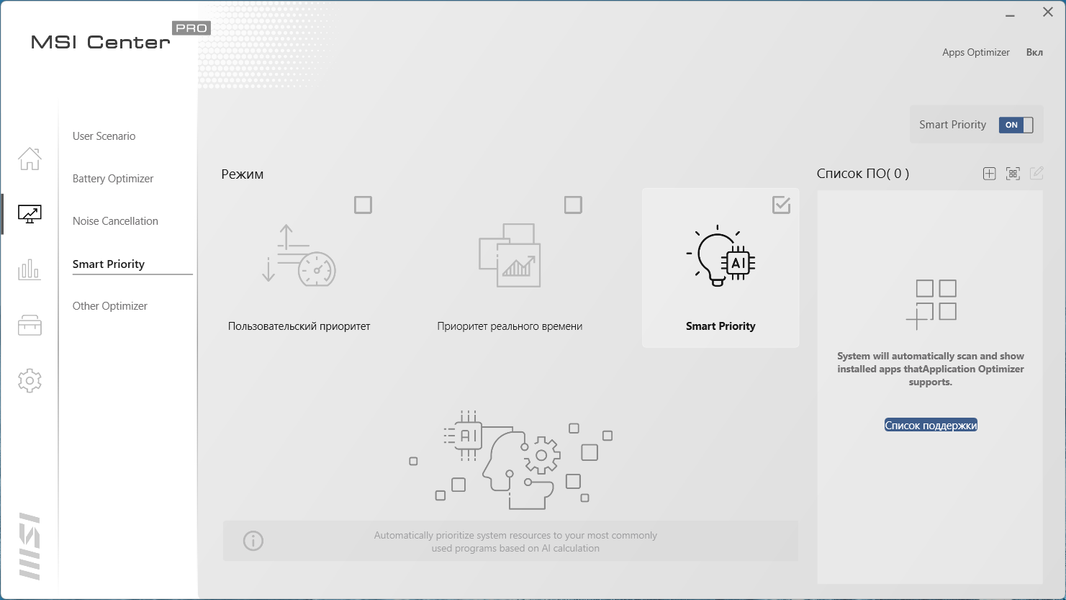 Закладка Smart Priority позволяет перераспределять аппаратные ресурсы с приоритетом пользовательских задач или реального времени...