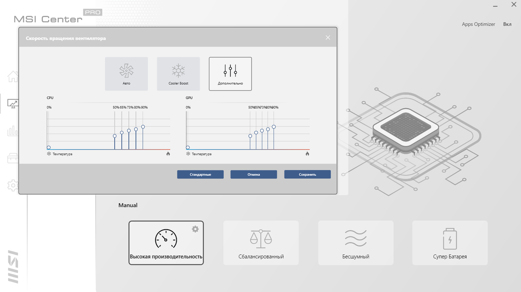 Специальный раздел посвящен выбору предустановленных профилей (пресетов) работы. Подробнее об этом мы расскажем в разделе о тестировании под нагрузкой.