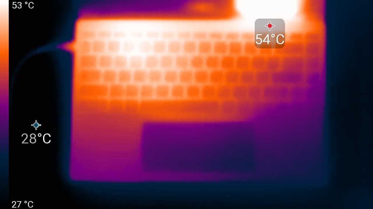 Ниже приведены термоснимки, полученные после долговременной работы ноутбука под максимальной нагрузкой на CPU и GPU (профиль High Performance):