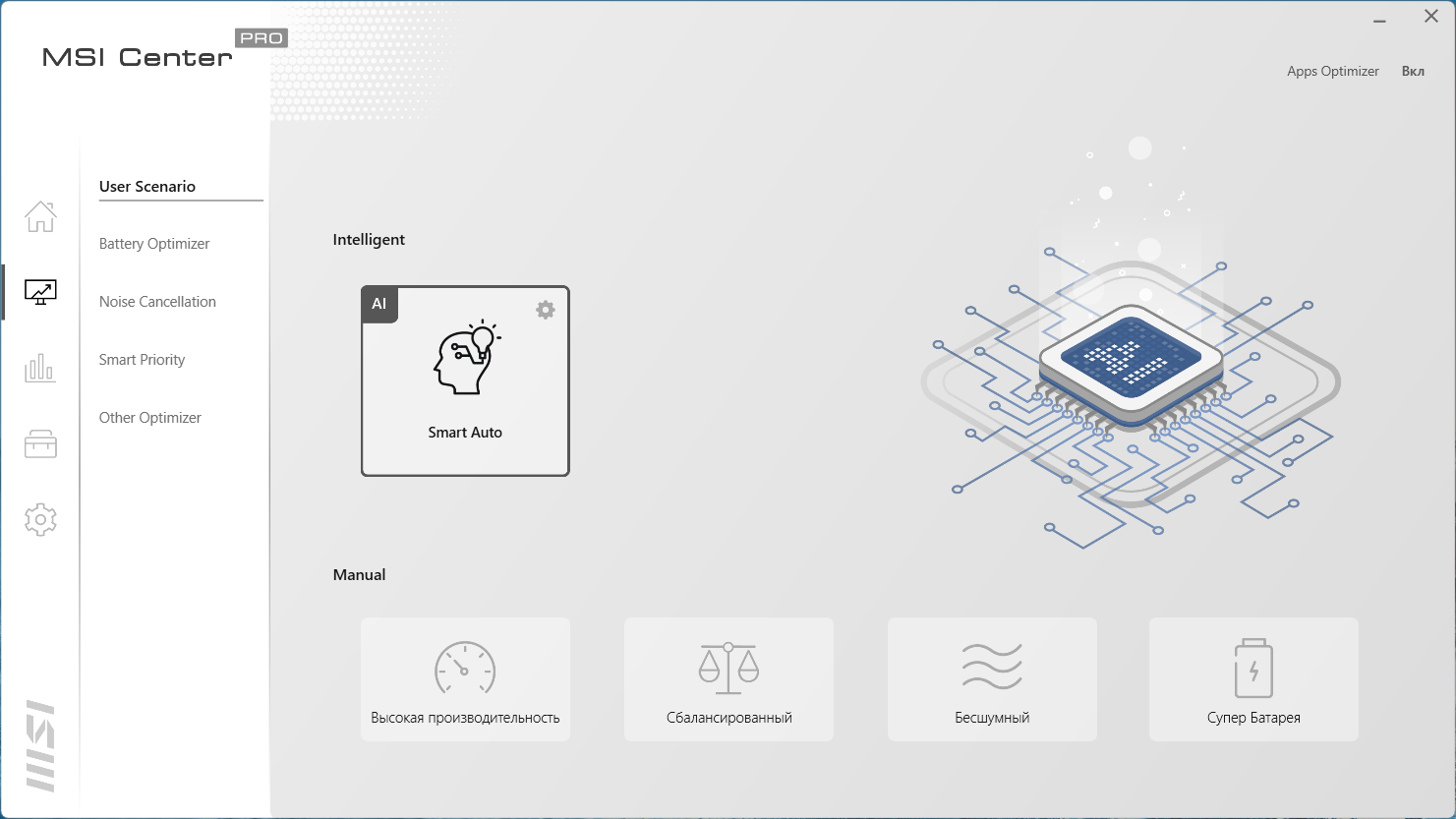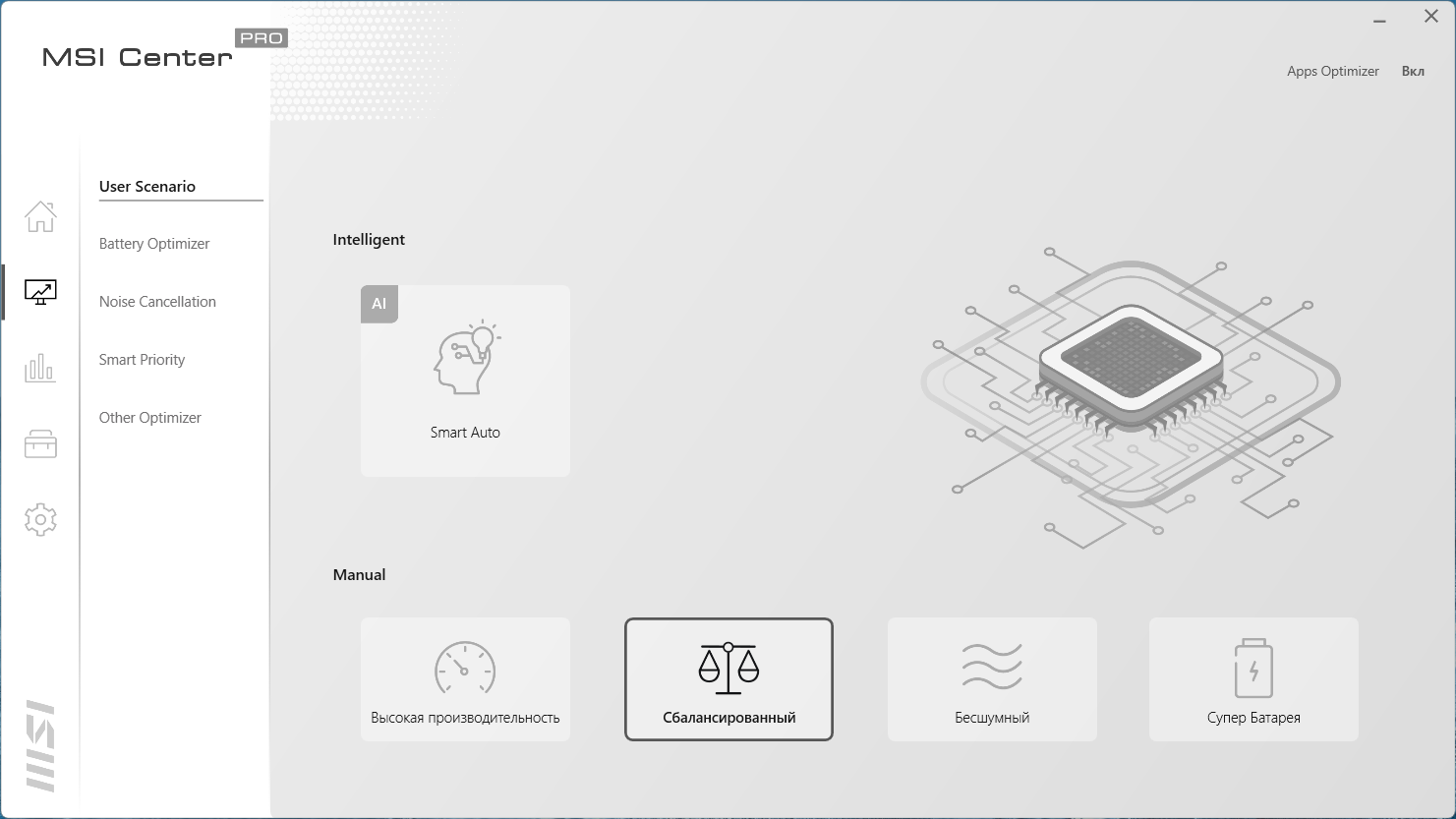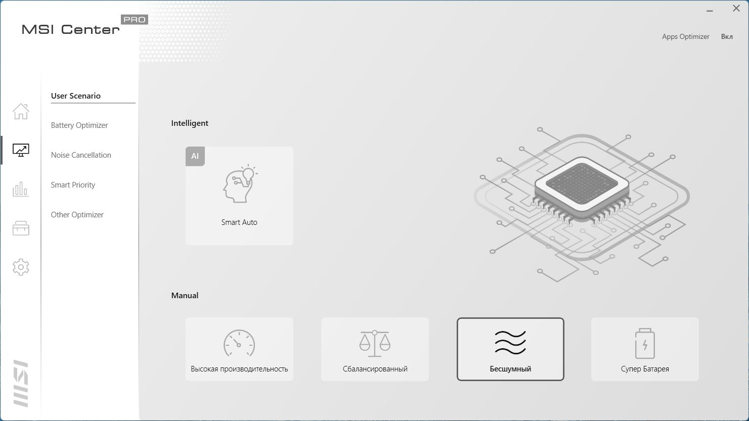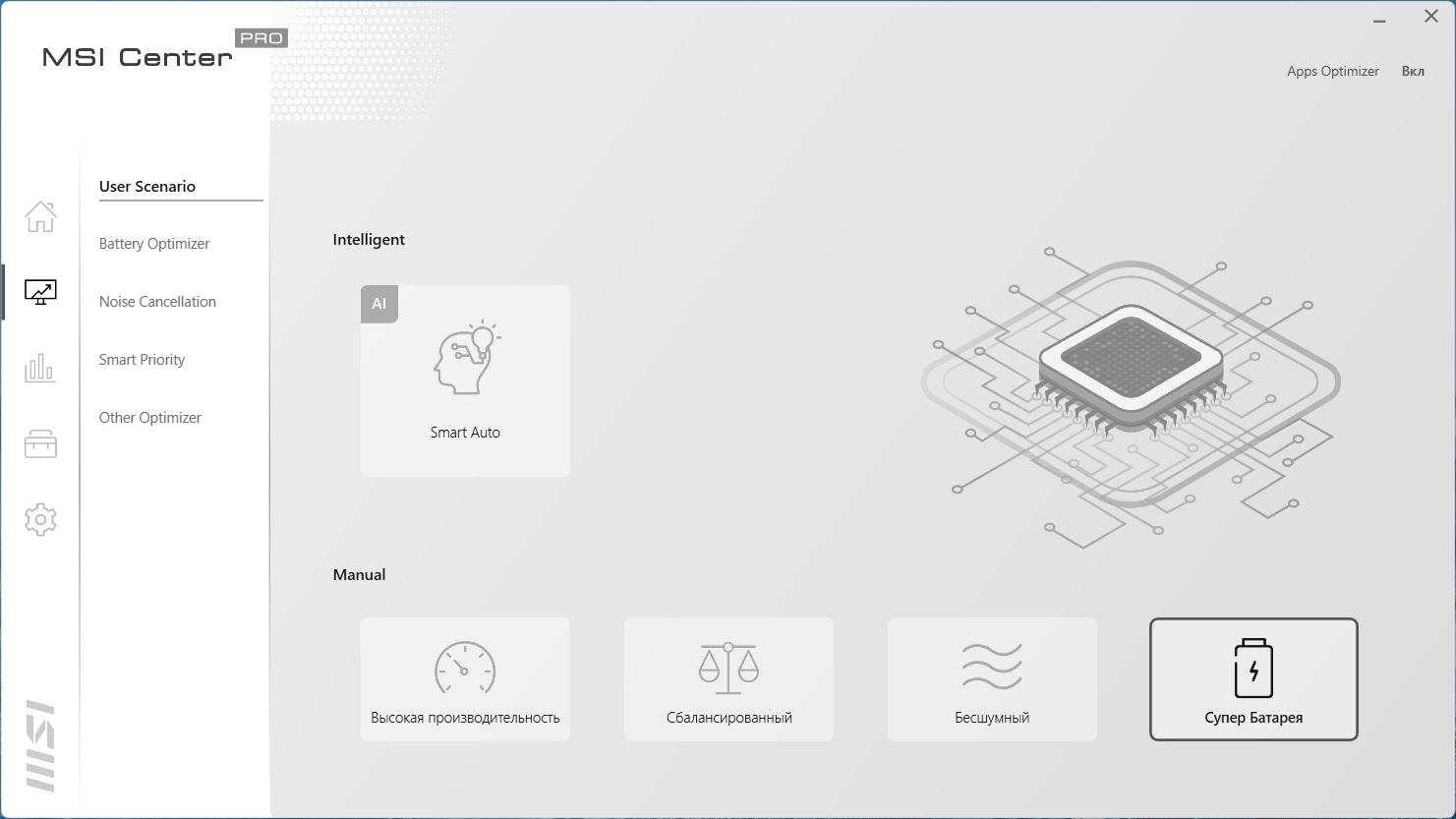 - Предустановленных профилей работы слишком много, а различия между некоторыми из них не определяются по наименованиям. Профиль Smart Auto не демонстрирует преимуществ перед более производительным Balanced и более экономичным Silent. Отличия Silent от Super Battery минимальные. В практической работе имеет смысл ограничиться тремя профилями: High Performance при нужде в максимальной производительности, Balanced для относительного равновесия между быстродействием и энергосбережением и Silent в случаях, когда требуется бесшумная работа системы охлаждения и длительная работа в автономном режиме.
