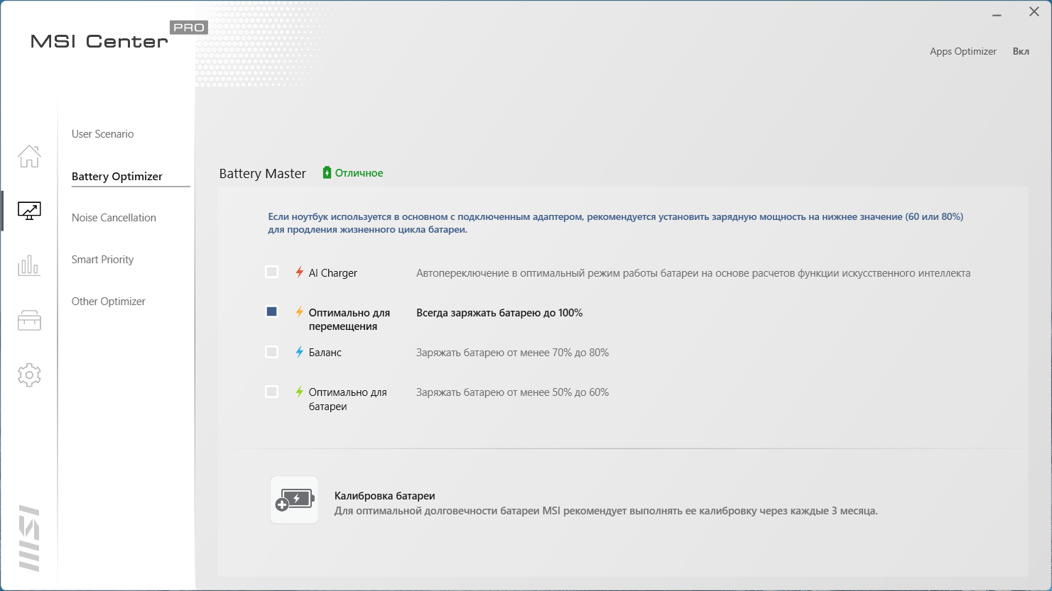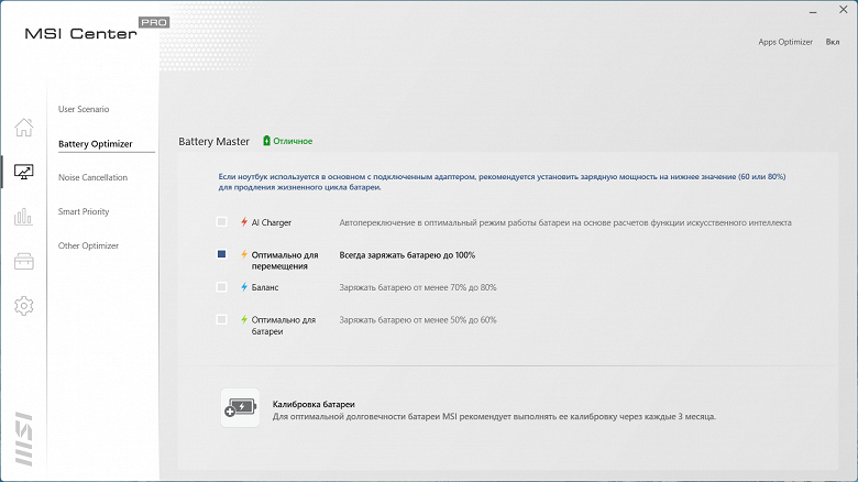 Шум вентилятора был максимальным при испытаниях в профилях High Performance, Smart Auto и Balanced, достаточно заметным — в Smart Battery, но по-прежнему низким в режиме Silent.