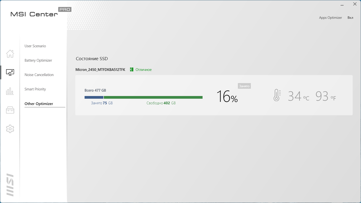 | Накопитель | SSD 512 ГБ (Micron 2450, M.2, PCIe Gen 4 NVMe) | |