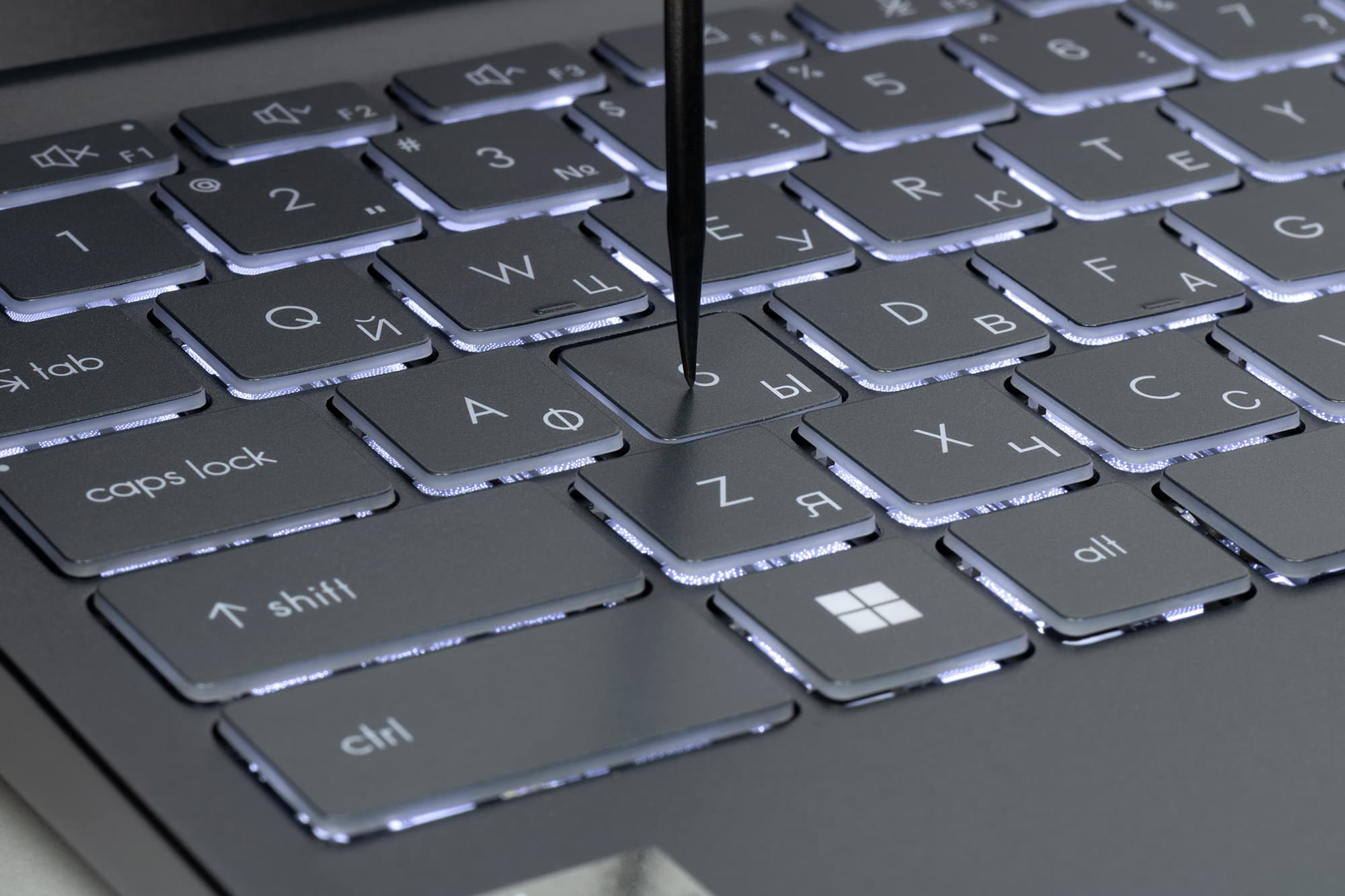 В ноутбуке используется полноразмерная клавиатура мембранного типа с небольшим (около 1,5 мм) вертикальным ходом кнопок.