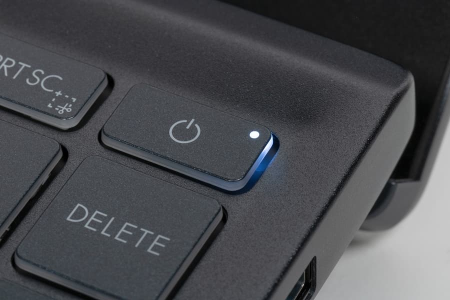 Выключатель питания расположен в дальнем от пользователя правом углу лицевой панели. Он снабжен собственным светодиодным индикатором, а по форме и размерам не отличается от других кнопок верхнего ряда клавиатуры.