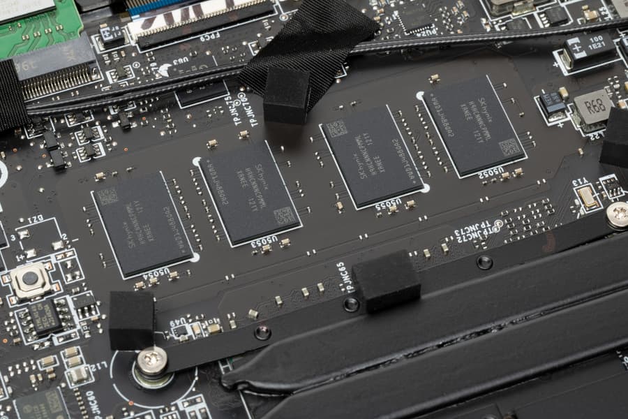 Машина располагает 16 ГБ оперативной памяти LPDDR4, работающей в четырехканальном режиме (это соответствует двухканальному режиму традиционной DDR4 SDRAM). Микросхемы распаяны на системной плате; слотов для установки дополнительных модулей нет, что исключает возможность замены и апгрейда ОЗУ. Заметим, что мобильные процессоры Intel Core 12-го поколения могут работать и с LPDDR5, но память пятого поколения дороже, а соображения экономии — отнюдь не последнее, чем при проектировании бизнес-ноутбука озабочен производитель.