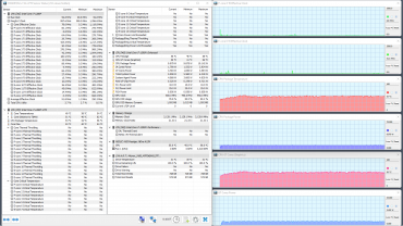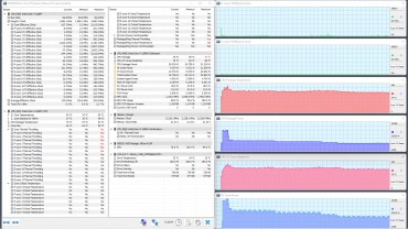 Пиковое потребление GPU в ходе начальной активации турборежима составило 16 Вт, но тактовая частота достигла лишь 1350 МГц. Последующая стабилизация была достигнута на более низких значениях тактовой частоты обоих вычислителей, чем в их раздельных испытаниях под максимальной нагрузкой, но отбор мощности и нагрев были выше, чем в ранее описанных прогонах