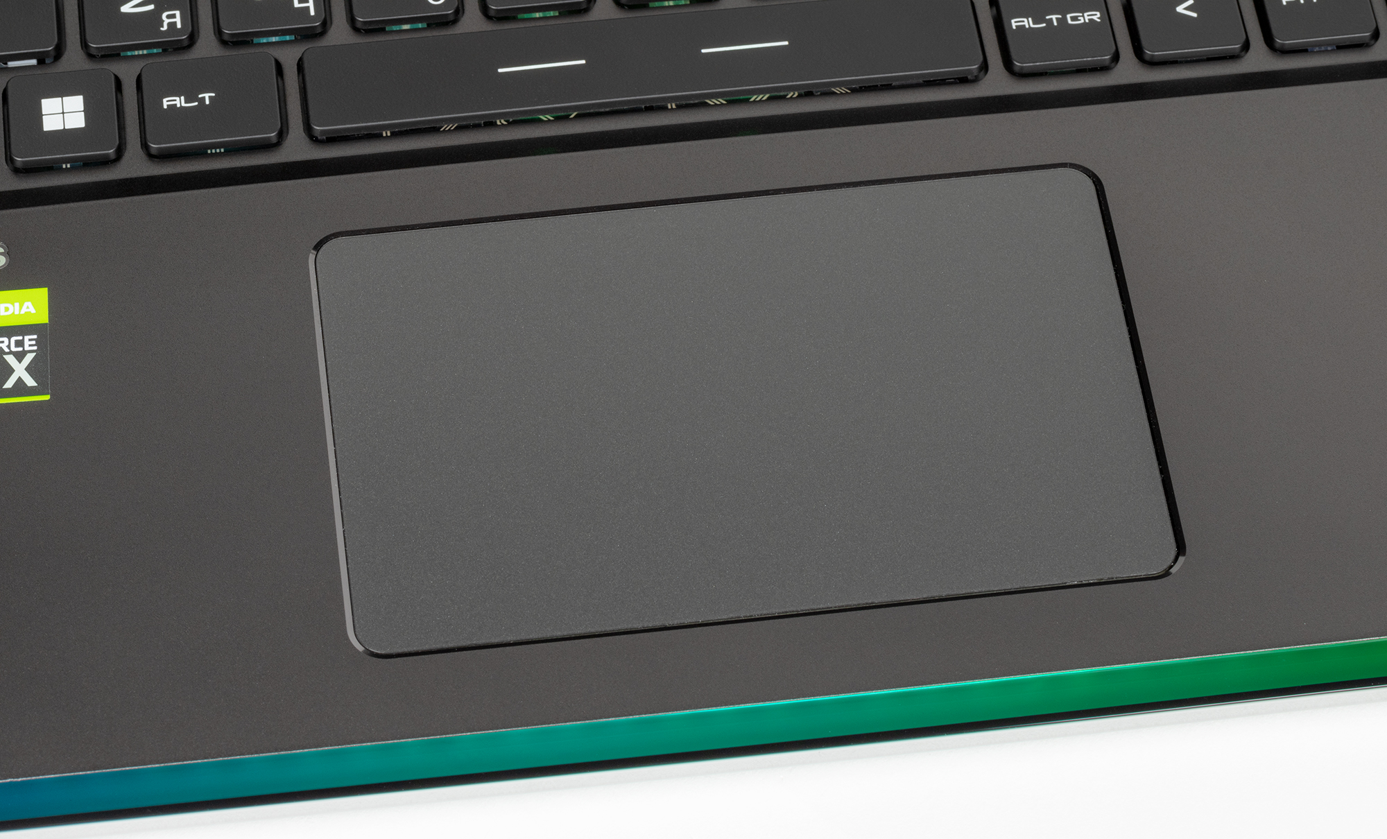 Тачпад для такого крупного ноутбука не слишком большой (105×65 мм), хотя сейчас их стараются делать максимально возможного размера. Выделенных клавиш у него нет, но сенсорная площадка поддерживает нажатия — левый и правый нижние края работают как соответствующие кнопки мыши. Есть сочетание клавиш для его быстрого отключения, что полезно в некоторых случаях, особенно для игр с мышью.
