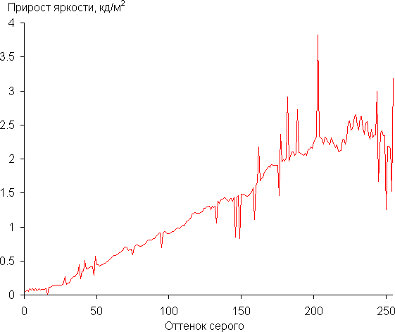В любом случае матрица быстрая. После разгона на фронтах некоторых переходов появляются всплески яркости с небольшой амплитудой (графики для перехода между оттенками серого 40% и 60% по численному значению цвета оттенка, яркость — вертикальная ось, время — горизонтальная ось):
