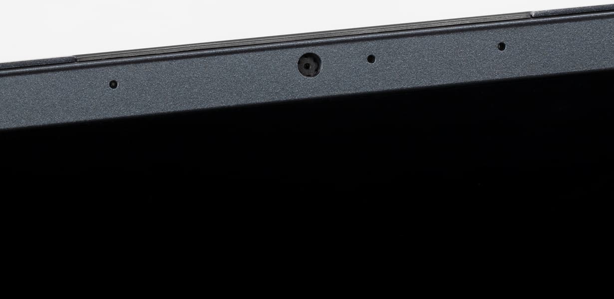 В верхней части довольно тонкой рамки вокруг экрана (6 мм слева и справа, 9 мм сверху) расположены стандартная веб-камера с сигнальным светодиодом и двумя микрофонами. Аппаратной защиты от включения камеры нет, но можно быстро включить и отключить ее сочетанием клавиш. Качество съемки традиционное плохонькое.