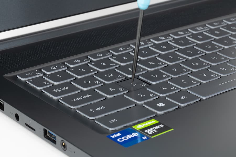 В традиционном месте перед клавиатурой расположен заглубленный кликпад размером 105×66 мм. У него нет выделенных клавиш, но сенсорная площадка поддерживает нажатия условно в левом нижнем и правом нижнем углах, что соответствует нажатиям стандартных кнопок мышки. Авторы обзора не являются любителями кликпадов, по условным кнопкам не всегда удается попасть с первого раза, а сложные операции, типа выделения и перетаскивания, здесь осуществлять совсем неудобно. У нас были регулярные трудности даже с касанием двумя пальцами для вызова контекстного меню — курсор при этом постоянно сильно сдвигался. Разумеется, поддерживаются все традиционные жесты, например для переключения рабочих столов, сворачивания и разворачивания окон, которые осуществляются двумя, тремя или четырьмя пальцами, но для горизонтальных четырехпальцевых жестов площадка кликпада все-таки маловата. Тачпад можно быстро отключить сочетанием клавиш. К сожалению, столь удобного в быту сканера отпечатков пальцев у ноутбука нет — видимо, это не геймерский атрибут.