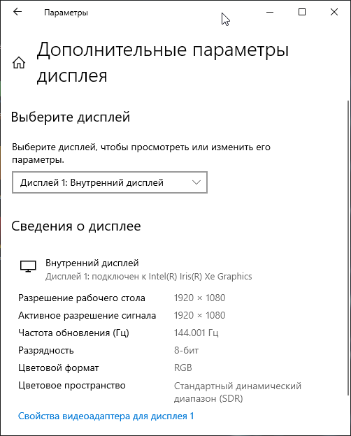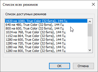 В настройках экрана доступна только одна частота обновления 144 Гц.